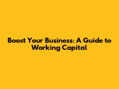 Boost Your Business: A Guide To Working Capital