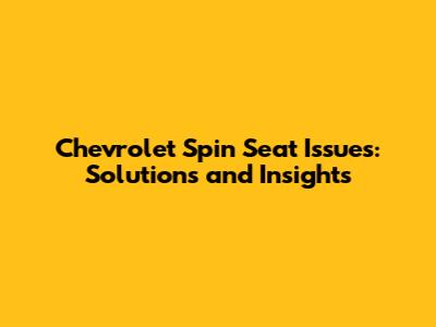 Chevrolet Spin Seat Issues: Solutions And Insights
