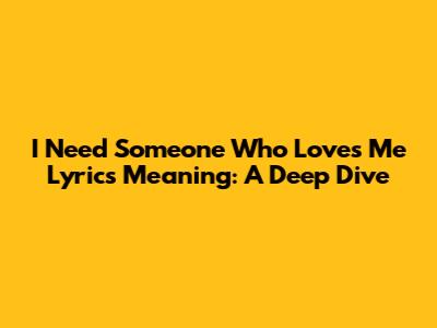 Decoding 'I Need Someone Who Loves Me' Lyrics: A Deep Dive
