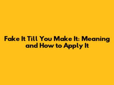 Fake It Till You Make It: Meaning And How To Apply It