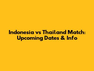 Indonesia Vs Thailand Match: Upcoming Dates & Info