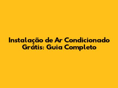 Instalação De Ar Condicionado Grátis: Guia Completo