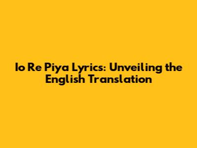 Io Re Piya Lyrics: Exploring The English Translation