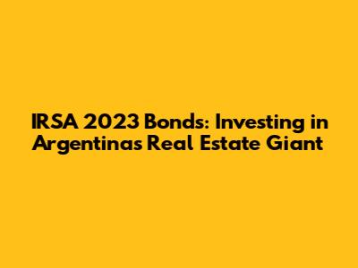 Hey guys! Thinking about diving into the world of Argentinian investments? Let's talk about IRSA's 2023 bonds! IRSA, or Inversiones y Representaciones Sociedad Anónima, is a major player in Argentina's real estate market. Understanding their obligaciones negociables, or negotiable obligations (basically, bonds), from 2023 can be a smart move if you're looking to diversify your portfolio. This article will break down everything you need to know, from what these bonds are all about to the potential risks and rewards involved. We'll explore IRSA's background, the specifics of the 2023 bond offering, and what factors to consider before you jump in. So, buckle up, and let's get started!