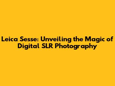 Leica Sesse: Unveiling The Magic Of Digital SLR Photography