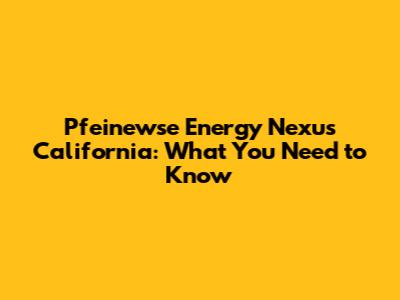 Pfeinewse Energy Nexus California: What You Need To Know