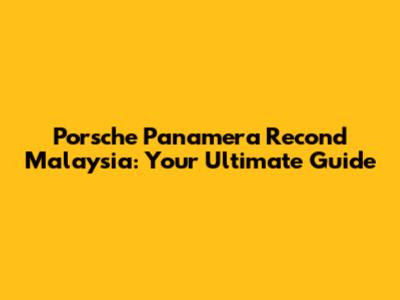 Porsche Panamera Recond In Malaysia: A Comprehensive Guide