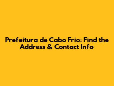 Prefeitura De Cabo Frio: Find The Address & Contact Info