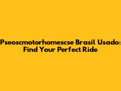Pseoscmotorhomescse Brasil Usado: Find Your Perfect Ride