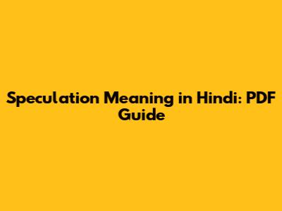 Speculation Meaning In Hindi: PDF Guide