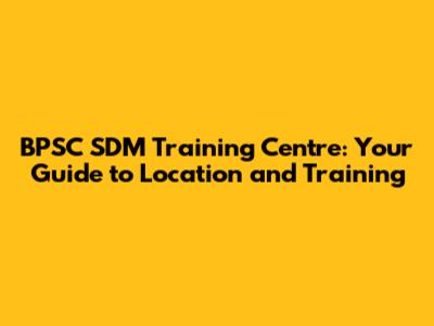 Where Is The BPSC SDM Training Centre?